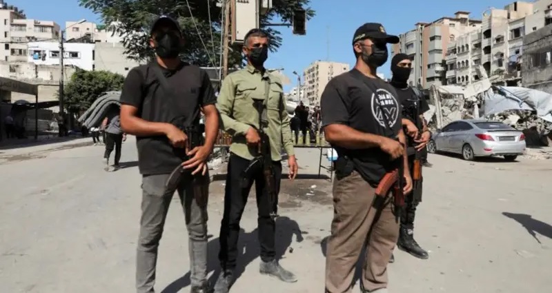 हमासका केही लडाकू सादा पोशाकमा देखिएका छन् भने केहीले सैन्य पोशाक लगाएका छन् । गाजामा अहिले युद्धविराम लागू भइसकेको छ । दुवैतर्फका बन्धक तथा बन्दी रिहाइका लागि काम भइरहेको छ ।