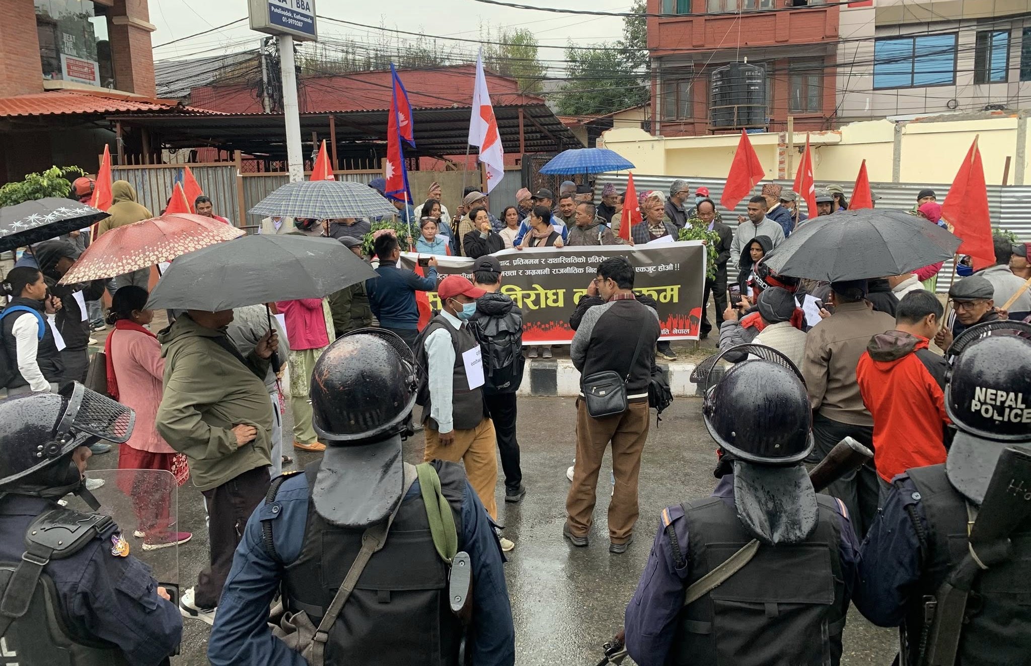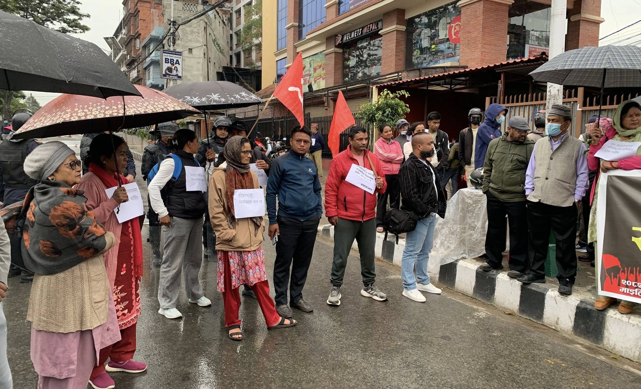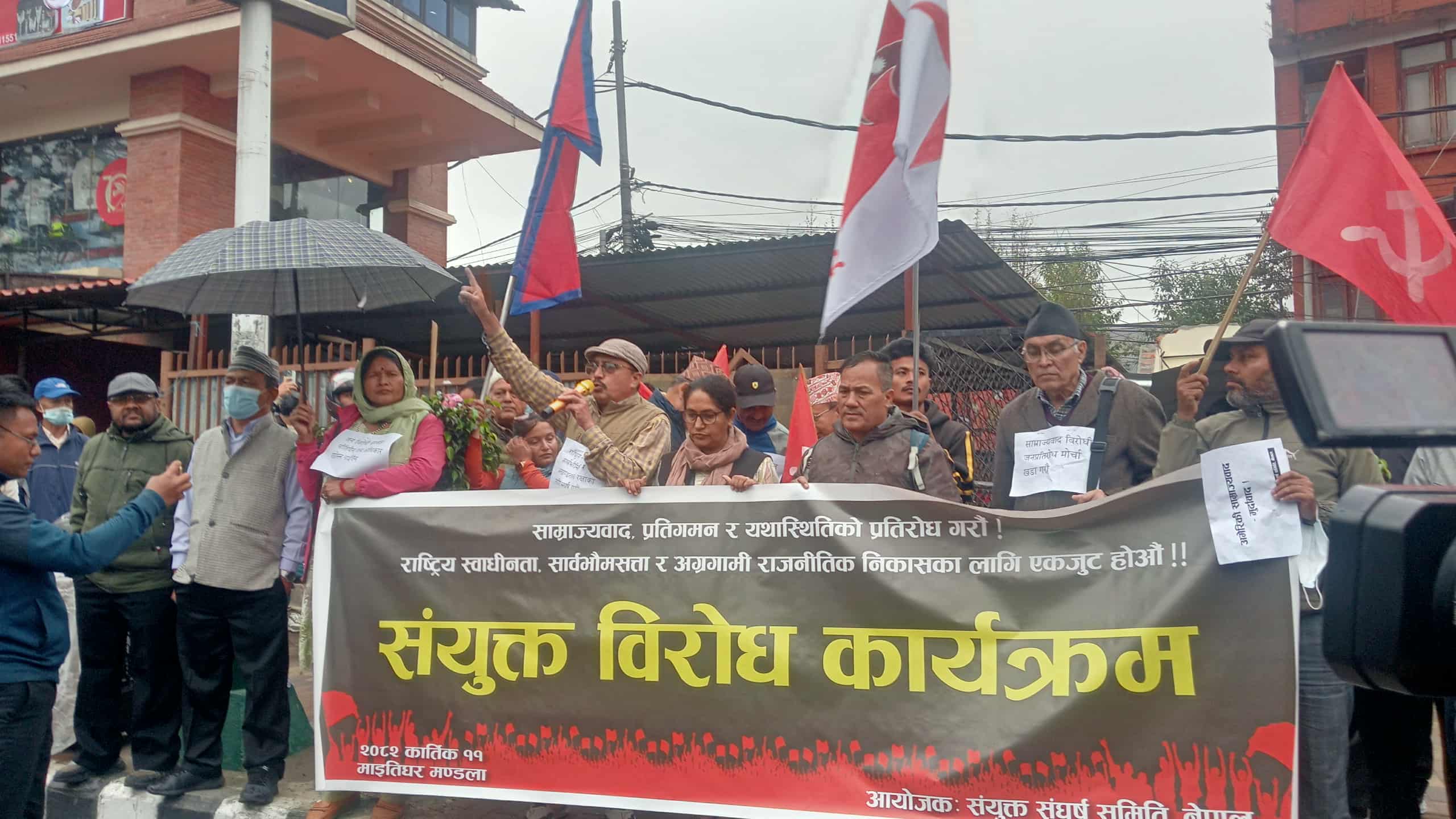 काठमाडौं, कात्तिक ११ — एघार वटा कम्युनिस्ट पार्टी र संगठनहरुद्धारा निर्मित संयुक्त संघर्ष समिति नेपालले साम्राज्यवाद, प्रतिगमन र यथास्थितिको विरोध गर्दै माइतिघर मण्डलामा संयुक्त विरोध कार्यक्रम सम्पन्न गरेको छ । समितिले राष्ट्रिय स्वाधीनता, सार्वभौमसत्ता र अग्रगामी राजनीतिक निकासका लागि सबैलाई एकजुट हुन आह्वान गर्ने उद्देश्यले कार्यक्रम आयोजना गरिएको सहभागी नेकपा(बहुम)का काठमाण्डौ जिल्ला सचिव संघर्षले बताए ।