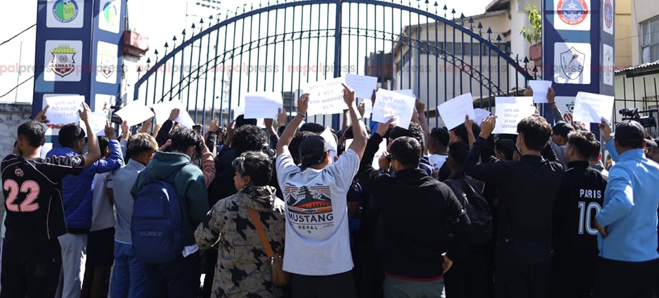 काठमाडौं । नेपाली फुटबल खेलाडीहरूले फुटबल गतिविधि ठप्प भएको विरोधमा बिहीबार अखिल नेपाल फुटबल संघ (ANFA) मुख्यालय अगाडि धर्ना दिएका छन् । नेपाल फुटबल खेलाडी संघ (ANFA) को अगुवाइमा सातदोबाटो, ललितपुरस्थित एन्फा परिसरमा खेलाडीहरूले “हाम्रा बुट थन्किएका छन्, हाम्रो खेल्ने अधिकार खै ?” जस्ता नारा लेखिएका प्लेकार्डसहित प्रदर्शन गरेका हुन् । खेलाडीहरूले पछिल्ला दुई वर्षदेखि निरन्तर स्थगित हुँदै आएको शहीद स्मारक ए–डिभिजन लिग तत्काल सञ्चालन गर्न माग गरेका छन् । उनीहरूले एन्फा नेतृत्वले बारम्बार लिग स्थगित गर्दै खेल क्षेत्रलाई अन्योलमा पारेको आरोपसमेत लगाएका छन् ।