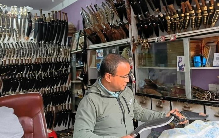 भोजपुर । नेपाली साहस र गौरवको प्रतीक मानिने ‘भोजपुरे खुकुरी’ अझै पनि भोजपुरका स्थानीय कालीगढहरूको हातमै चम्किरहेको छ । परम्परागत सीप र आधुनिक प्रविधिको मिश्रणमा तयार हुने यी खुकुरी देशभित्र मात्र होइन, विदेशसम्म पनि लोकप्रिय बनेका छन् । भोजपुरका खुकुरी व्यवसायी हीरा श्रेष्ठका अनुसार अहिले बजारमा उपलब्ध भोजपुरे खुकुरीको मूल्य रु ५०० देखि रु ५२,००० सम्म पर्छ । “यहाँका खुकुरीहरू साधारणदेखि विशेष डिजाइनका मागका आधारमा बनाइन्छन्,” उनले भने, “उच्च मूल्यका खुकुरी बनाउनका लागि उत्कृष्ट गुणस्तरका फलाम, काँसा र काठ प्रयोग गरिन्छ ।”