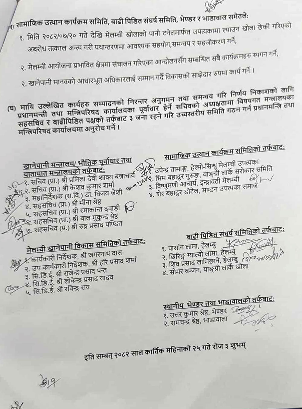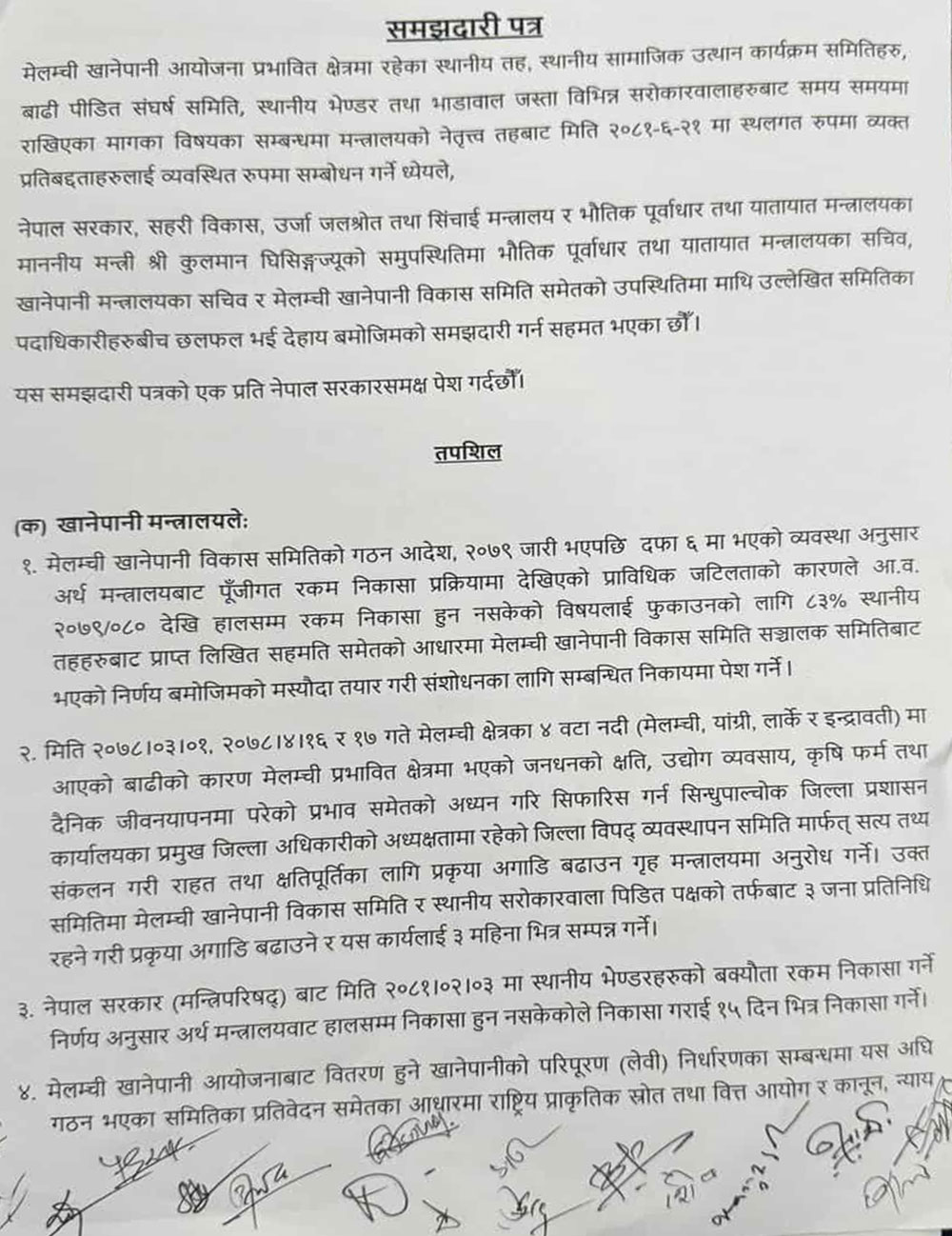 ६वार्तामार्फत मेलम्ची विवाद समाधान, स्थानीय र सरकारबीच १५ बुँदे सहमति