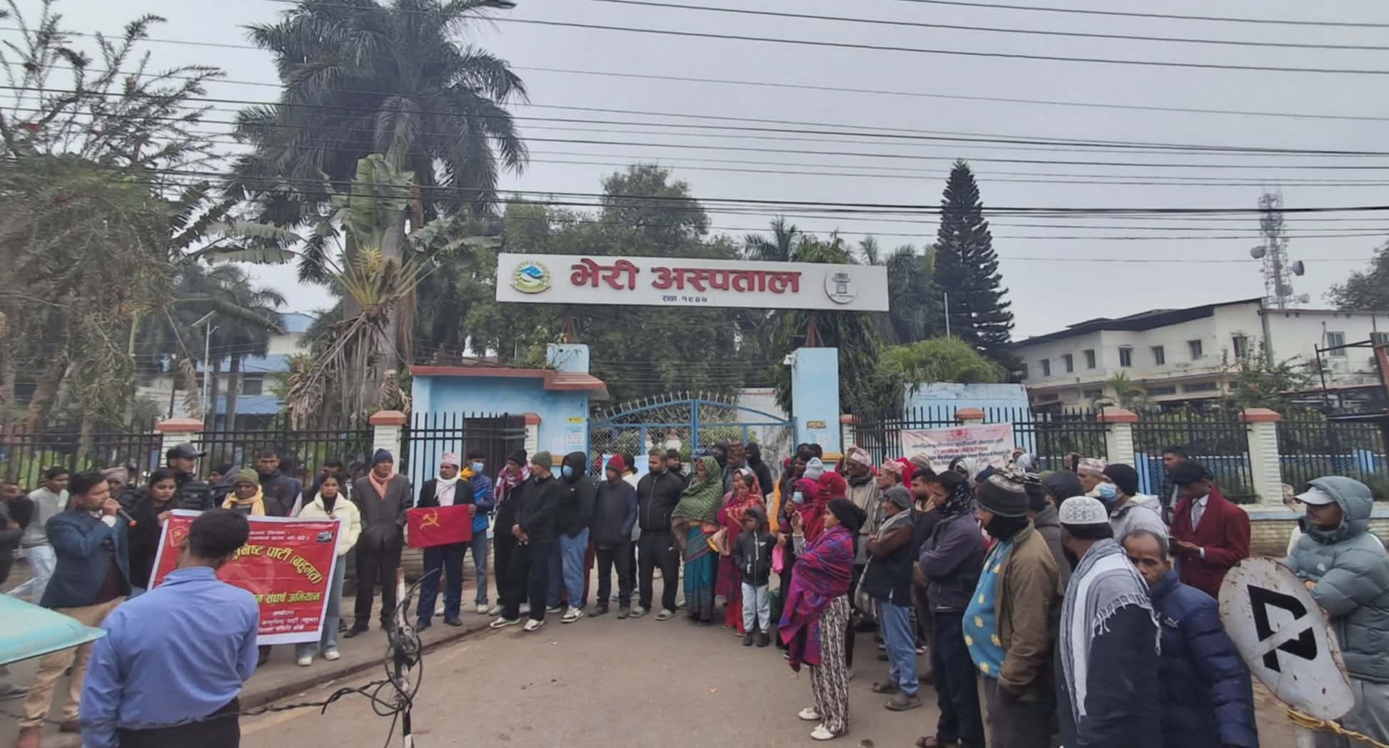 बाँके । ज्यूँदै शिशुलाई मृत घोषणा गरेको गम्भीर घटनालाई लिएर नेपाल कम्युनिस्ट पार्टी (बहुमत) बाँकेले भेरी अस्पताल प्रशासनविरुद्ध कडा आपत्ति जनाउँदै चेतावनी दिएको छ। पार्टीले अस्पताल गेट अगाडि विरोध कार्यक्रम आयोजना गरी चरम लापरवाहीको निन्दा गरेको हो । जिल्ला सेक्रेटरी तिलकले संचालन गरेको कार्यक्रमलाई सम्बोधन गर्दै नेकपा (बहुमत) बाँकेका इञ्चार्ज शक्तिले भेरी अस्पताल प्रशासनले गरीब जनताका छोराछोरीप्रति गम्भीर गैरजिम्मेवारी देखाएको आरोप लगाए । उनले उचित उपचार गर्नुको सट्टा ज्यूँदै शिशुलाई मृत घोषणा गर्नु अमानवीय र आपराधिक लापरवाही भएको बताए। यस्ता घटनाहरू समयमै सुधार नगरे पार्टीले जनताको जीवन रक्षाका लागि अस्पताल प्रशासनविरुद्ध गम्भीर कदम चाल्न बाध्य हुने चेतावनी पनि उनले दिए ।
