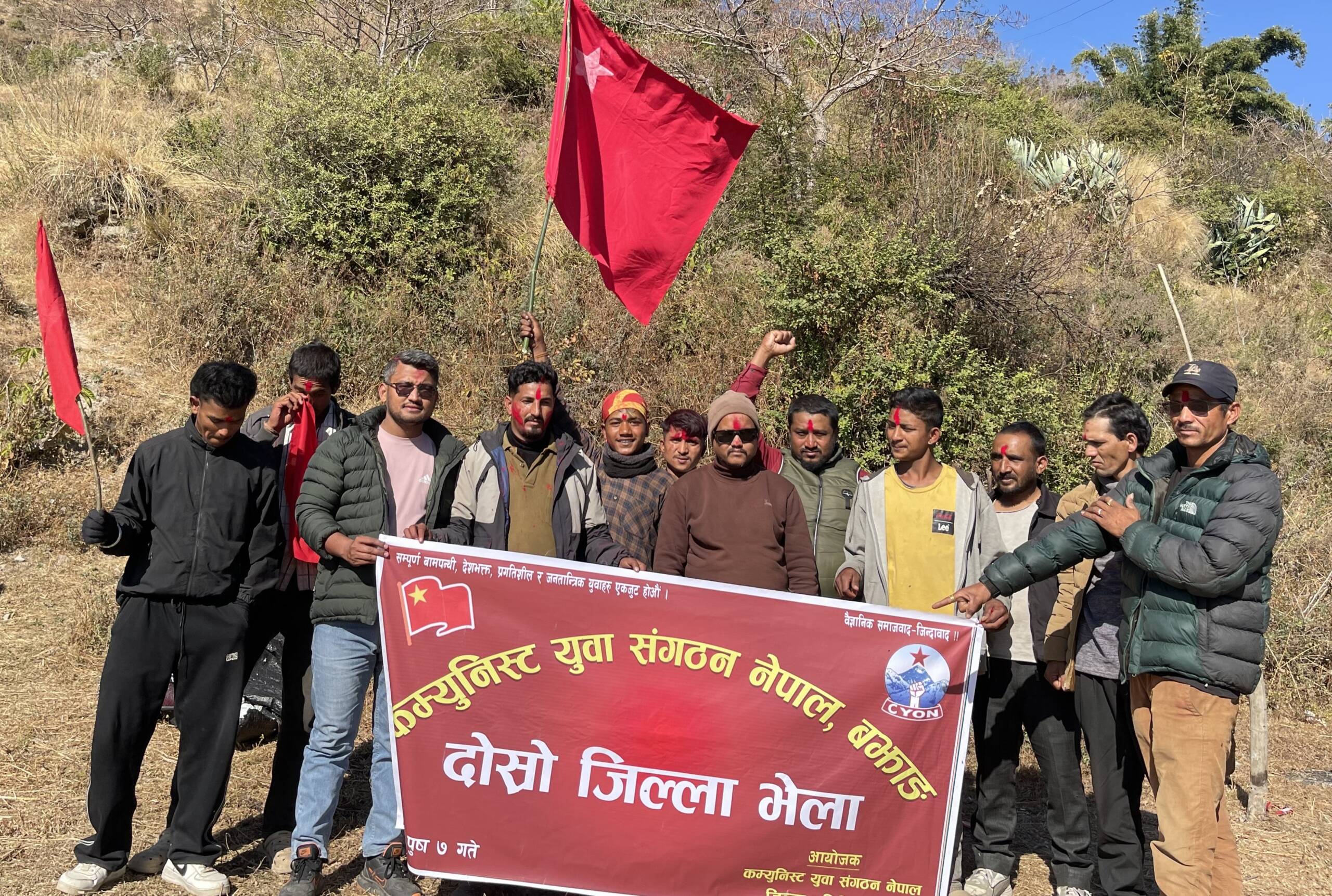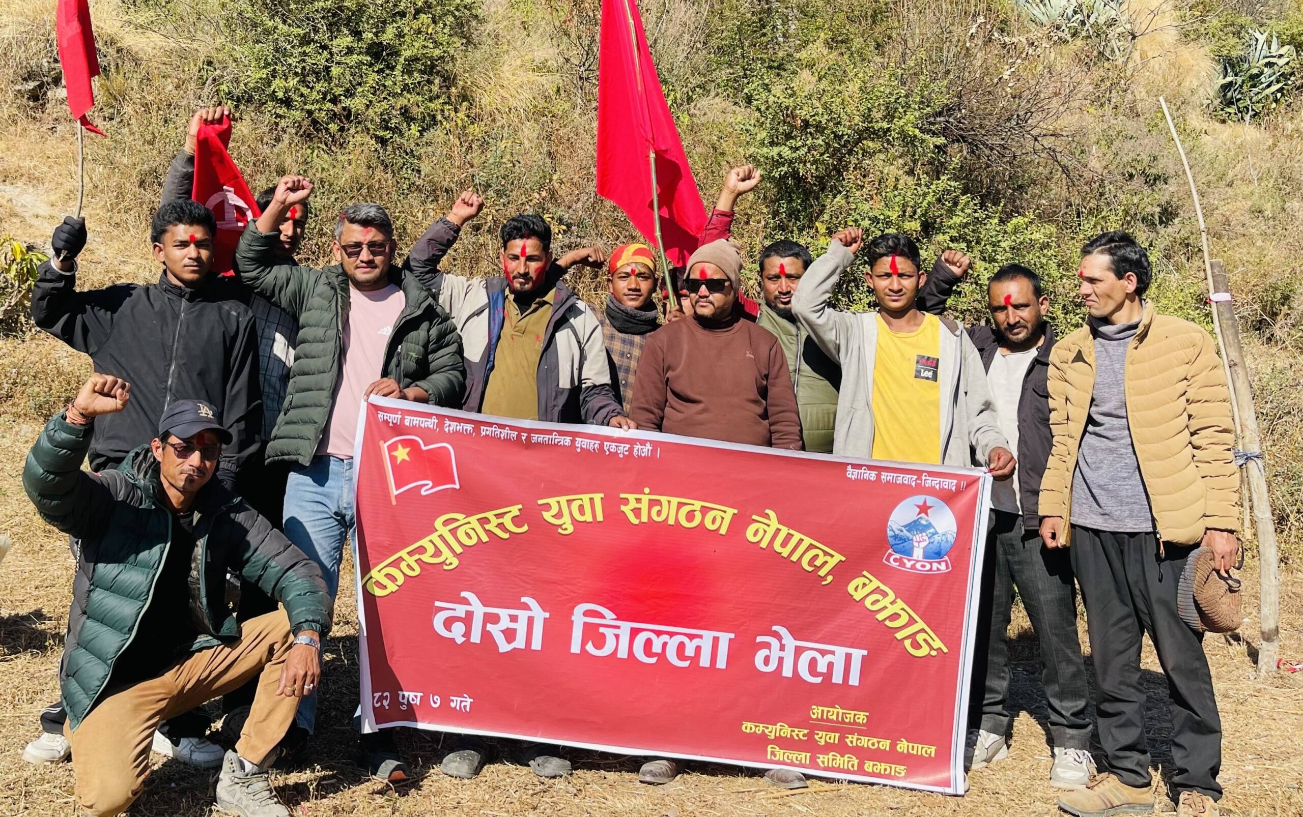 बझाङ । कम्युनिस्ट युवा संगठन नेपाल बझाङको दोस्रो जिल्ला भेला सम्पन्न भएको छ । भेलाले कमरेड अनिलको अध्यक्षतामा ११ सदस्यीय जिल्ला समिति सर्वसम्मत रूपमा चयन गरेको छ । संगठनका ७ नम्बर ब्युरो इन्चार्ज दिपेन्द्र सिंह ऐरीको प्रमुख आतिथ्यतामा सम्पन्न भेलामा नेकपा (बहुमत) का केन्द्रीय सदस्य प्रकाश रावल विशेष अतिथिका रूपमा उपस्थित थिए । भेलालाई सम्बोधन गर्दै प्रमुख अतिथि ऐरीले देश गम्भीर राजनीतिक, आर्थिक र सामाजिक संकटमा रहेको उल्लेख गर्दै सबै युवाहरू एकताबद्ध भएर संघर्षमा अघि बढ्नुपर्ने आवश्यकता औंल्याए ।