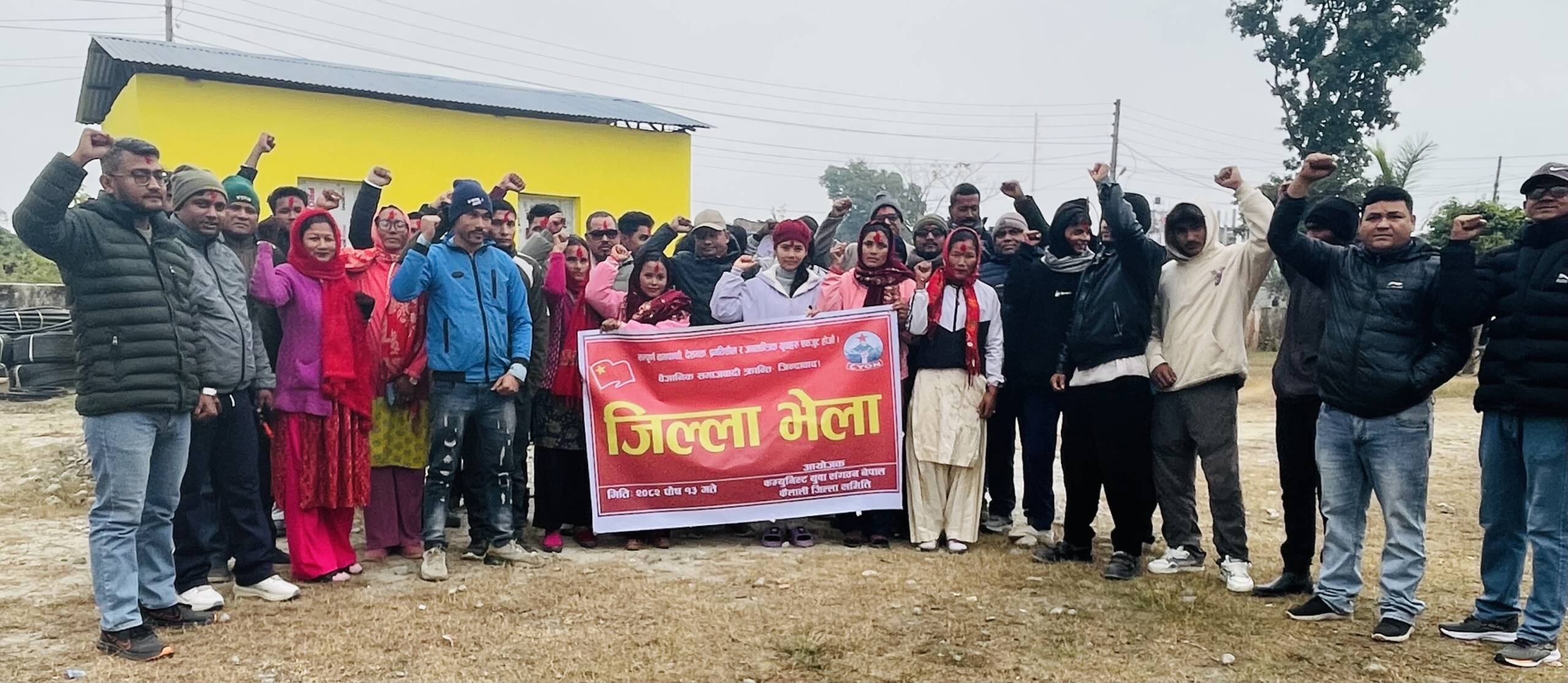 कैलाली । कम्युनिस्ट युवा संगठन नेपाल कैलालीको जिल्ला भेला सम्पन्न भएको छ । भेलाले निशान्त विकको अध्यक्षतामा १९ सदस्यीय जिल्ला समिति सर्वसम्मत रूपमा चयन गरेको छ । संगठनका केन्द्रीय संयोजक झलक विश्वकर्माको प्रमुख आतिथ्यतामा सम्पन्न भेलामा नेकपा (बहुमत) का ७ नम्बर ब्युरो इन्चार्ज प्रतिकको बिशेष उपस्थिति रहेको थियो । भेलालाई सम्बोधन गर्दै प्रमुख अतिथि विश्वकर्माले देश गम्भीर राजनीतिक, आर्थिक र सामाजिक संकटमा रहेको उल्लेख गर्दै सबै युवाहरू एकताबद्ध भएर संघर्षमा अघि बढ्नुपर्ने आवश्यकता औंल्याए ।