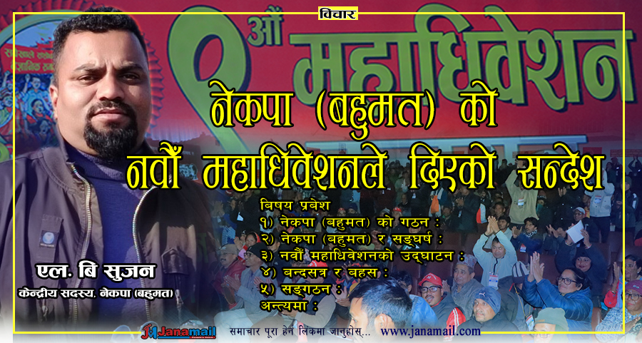 २०७९ सालमा हामीले नेपाल कम्युनिस्ट पार्टी (बहुमत) गठन गरेका हौँ । नेपाल कम्युनिस्ट पार्टीको नेतृत्व क्रान्तिकारी आन्दोलनबाट संसदीय संशोधनवाद भागेर सुधारवाद, संसद्वाद र अन्तत दलाल पुँजीवादी व्यवस्थाको शरणमा पुगेपछि (बहुमत) को रूपमा पुनर्गठन गरेका थियौँ । विचारधारात्मक सङ्घर्षमा तत्कालीन नेतृत्व अल्पमतमा परेको थियो हामी (बहुमत) मा थियो । अर्थ थियो कि सङ्ख्याभन्दा बढी विचारसँग जोडिएको छ । (बहुमत) सर्वहारा वर्गको विचारको केन्द्र हो । क्रान्तिकारी कम्युनिस्टहरूको विचारको (बहुमत) हो । नेपाली जनताको आशाको केन्द्र (बहुमत) हो । वैज्ञानिक समाजवादी क्रान्तिको केन्द्र (बहुमत) हो । त्याग उर्जा समर्पितबाट जन्मेको (बहुमत) हो । सङ्घर्ष, बलिदान र दसबर्षे जनयुद्धको जग र जनक्रान्तिको यात्रामा क. प्रज्वल लगायतका १२ जना सहयोद्धाको सहादत र बलिदानबाट जन्मेको पार्टी नेकपा (बहुमत) हो । साथै नेपालका कम्युनिस्ट पार्टीहरू दलाल संसदीय पुँजीवादी व्यवस्थामा पतन भएको बेला तिनीहरूको चिहानबाट जन्मेको पार्टी (बहुमत) हो । राजनीतिक बैचारिक, सङ्गठन र सङ्घर्षको बीचबाट पुर्नगठन भएको पार्टी (बहुमत) हो । वैज्ञानिक समाजवादी क्रान्ति गर्नुपदर्छ भन्ने पार्टी (बहुमत) हो । त्यस कारणले नवौँ राष्ट्रिय महाधिवेशनमा व्यापक छलफल बहसलाई केन्द्रिकृत गर्दै पार्टी सङ्गठन, युवा र विद्यार्थी लगायतका मोर्चाहरूलाई लामो अभियानबाट रूपान्तरण हुने छौँ । यसप्रकारको पार्टी (बहुमत) हो । क्रान्ति हुन्छ, गरिन्छ भन्ने शाहास र आँट गर्ने पार्टी (बहुमत) हो ।