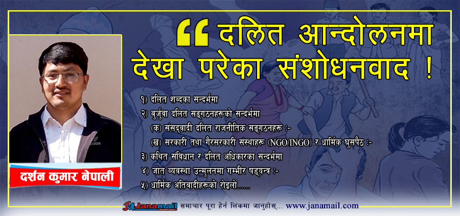 गौरवपूर्ण इतिहास बोकेको नेपालको क्रान्तिकारी दलित आन्दोलनमा एकातिर NGO/INGO मार्फत साम्राज्यवादी घुसपैठहरू हुन थालेका छन् भने अर्कोतिर धार्मिक अतिवादले आफूलाई जबर्जस्त दलित समुदायको उद्धारका नाममा सेवाभाव देखाउँदै वर्णाश्राममा आधारित जात व्यवस्थालाई जीवित राख्न चाहन्छ । कहिले आर्थिक लाभको लागि उत्पीडित दलित समुदायका गाउँ बस्तीका कथा ब्यथा र संकटहरू देखाएर दलित समुदायलाई शोषण गर्छन् भने कहिले विभिन्न खाले आर्थिक सहयोगको प्रलोभन देखाउँदै दलित समुदायलाई परनिर्भर र आशे जनशक्ति बनाइरहेका छन् । उत्पीडित समुदायमा भ्रम सिर्जना गर्दै विभिन्न प्रलोभनमा पारी क्रान्तिकारी दलित राजनीतिक सङ्गठनहरूप्रतिको आस्थाबाट अलग्याएर दलित समुदायको भावनासँग खेल्दै जातीय विभेदको अन्त्य वा जात व्यवस्थाको अन्त्यको लागि सङ्गठित हुन नदिने चलखेलहरू निरन्तर रूपमा चलिरहेका छन् ।