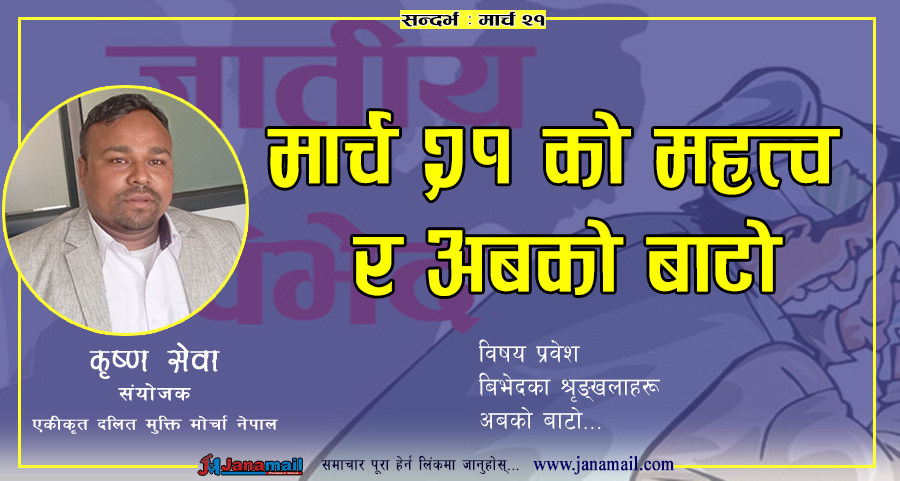 सन् १९६० मा दक्षिण अफ्रिकाको सार्पभिल्ले भन्ने ठाउँमा रङ्गभेद अर्थात बर्णको आधारमा काला र गोराबीच गरिने बिभेदको विरुद्धमा गरिएको सङ्घर्षपूर्ण ऐतिहासिक दिन हो । जुन दिन अर्थात मार्च २१ को दिन प्रहरीको दमनबाट ६९ जना निहत्था सङ्घर्षरत मुक्तियोद्धाहरूको हत्या भएको थियो भने ३०० जना भन्दा बढी घाइते तथा अङ्गभङ्ग भएका थिए । बिभेदका विरुद्ध गरिएको एक ऐतिहासिक सङ्घर्ष हो यसलाई हामीले उत्पीडनका बिरुद्धको सुनौलो दिनको रूपमा लिनु पर्दछ । यस आन्दोलनले विश्वमा हुने उत्पीडनका बिरुद्धको आन्दोलनमा ईटा थप्ने महत्वपूर्ण कार्य गरेको छ । यसलाई हामीले सङ्घर्ष तथा क्रान्तिको स्रोतको रूपमा लिनु पर्दछ । यस्ता मानवहितका कठिनपूर्ण सङ्घर्षहरू नेपालको दलित आन्दोलनका लागि उर्जा र प्रेरणा हुन् । यही मुक्तिकामी आन्दोलनको जगमा “सबै मानिस स्वतन्त्र जन्मिन्छन् र उनीहरूको अधिकार तथा सम्मान समान छ” भन्ने नाराका साथ अन्तर्राष्ट्रिय रङ्गभेद तथा जातिय विभेद विरुद्धको अभिसन्धी –१९६५ रङ्ग तथा जातिय विभेद अन्त्यका लागि लागू गरियो ।
