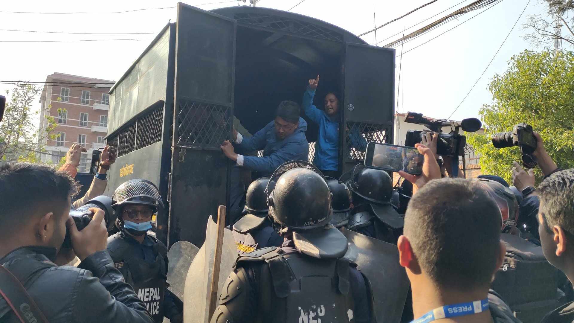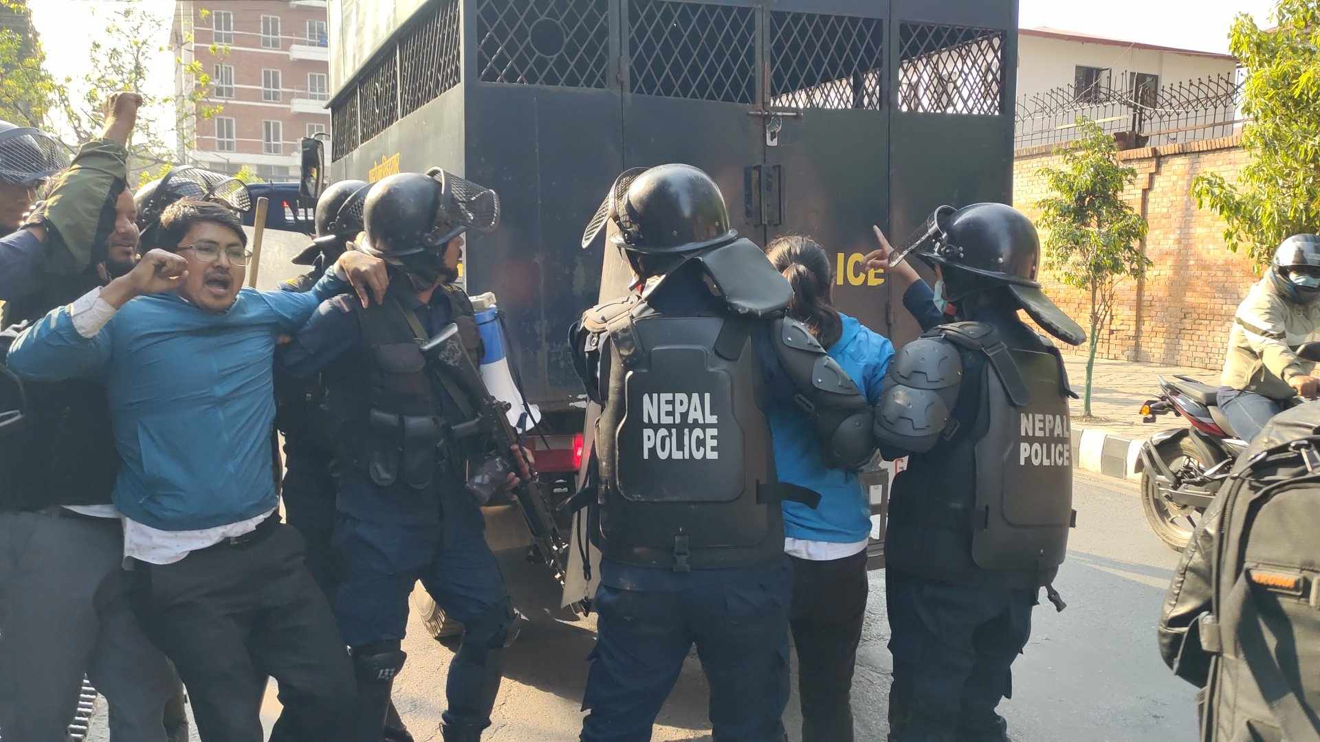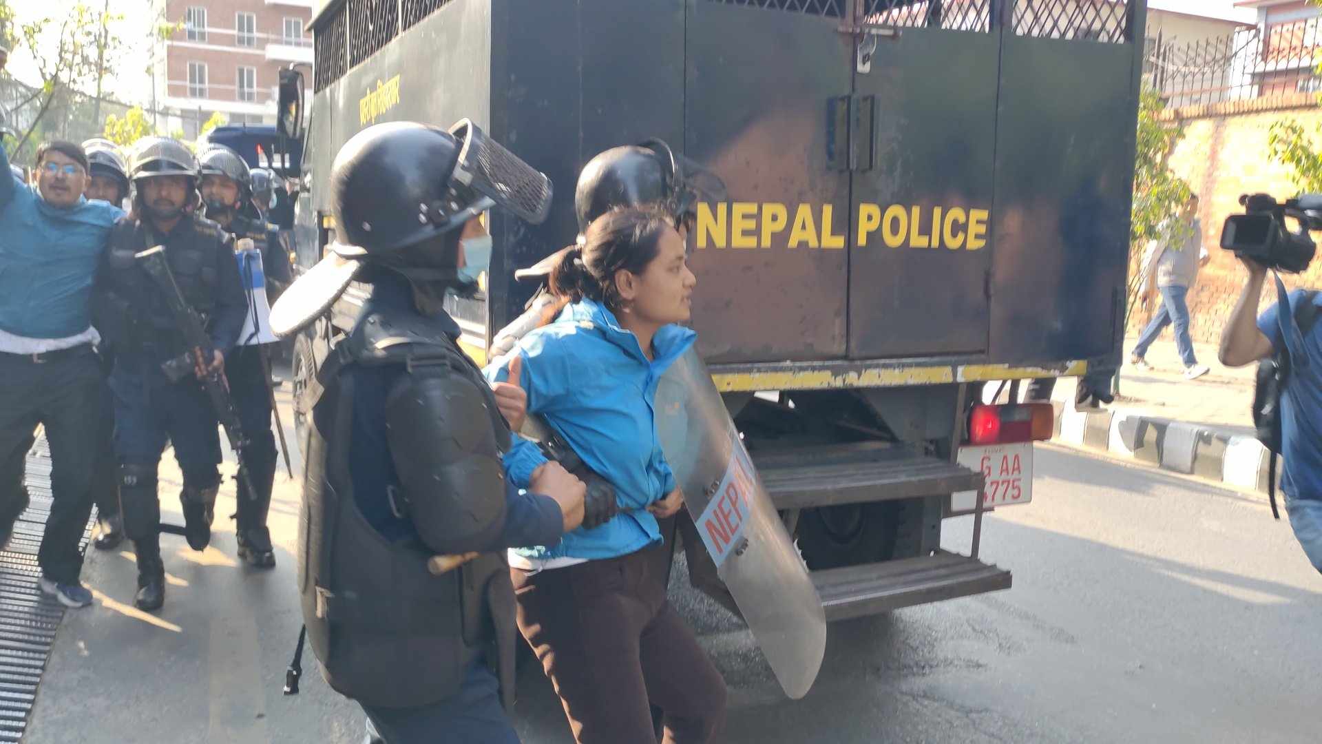 प्रदर्शनका क्रममा प्रहरीले बहुमतका १२ जना नेता कार्यकर्ताहरुलाई गिरफ्तार गरेको छ । गिरफ्तार हुनेहरुमा उक्त पार्टीका काठमाडौँ जिल्ल्ला सेक्रेटरी दर्शन, ट्रेड युनियन महासंघका संयोजक ध्रुब, अखिल (क्रान्तिकारी) का केन्द्रीय अध्यक्ष विरेन्द्र शाह, उपाध्यक्ष रुपा बुढामगर, सचिवालय सदस्यहरु लक्ष्मी शाह, हस्त विक, सर्जन पाण्डे, क्याम्पस जिल्ला अध्यक्ष दिनेश नेपाली, काठमाडौं जिल्ला उपाध्यक्ष समिर विश्वकर्मा, प्रलाद, रामहरी, कमल रहेका छन् ।