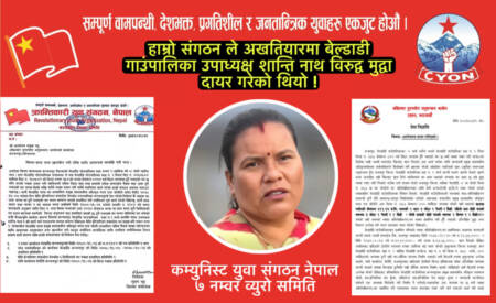 कम्युनिस्ट युवा संगठन नेपालको संघर्ष पश्चात अख्तियारद्धारा आरोप पत्र दायर , उपाध्यक्ष नाथ को पद गुम्यो