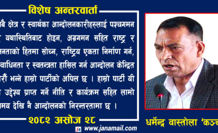 पश्चगमन र यथास्थिति भन्दा, अग्रगमन सहित स्वाधीनता र स्वतन्त्रता हासिल गर्न आन्दोलन गरौं : धर्मेन्द्र वास्तोला ‘कञ्चन’
